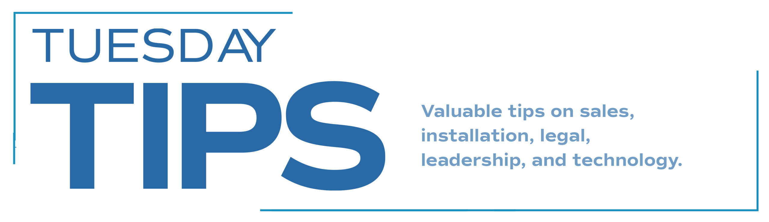 Welcome to Tuesday Tips, a weekly series featuring valuable tips on sales, installation, legal, leadership, technology, and making your business more profitable.